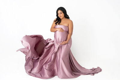 Every detail of your maternity session is intentionally crafted. From start to finish, you’ll feel supported with styling guides, access to my curated client closet of elegant gowns and silks, and personalized set designs that reflect your vision. During your session, I’ll provide gentle posing direction so you can feel relaxed, radiant, and fully present in the moment.